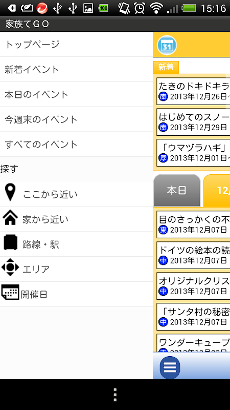 ・週末開催イベントの検索