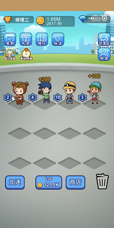 玩家将操作游戏主角从无业游民到世界首富体验财富积累;无业游民带来的秒金非常之少,但是你通过升级角色带来高等级的角色来提升秒金和总财富;在这里您需要不断的晋升赚钱,最后这个世界首富的头衔就会更进一步了,而且非常的有意思,最终的目的就是成为小小神豪!