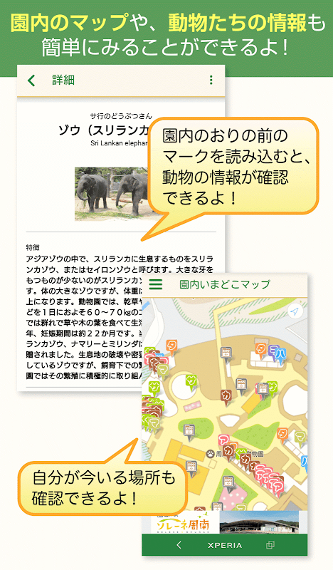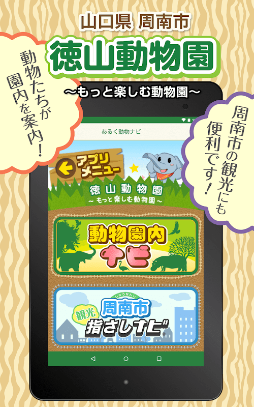 動物園ナビ・スタンプラリー・動物ずかんなどを1つにした楽しさ盛りだくさんのアプリです。