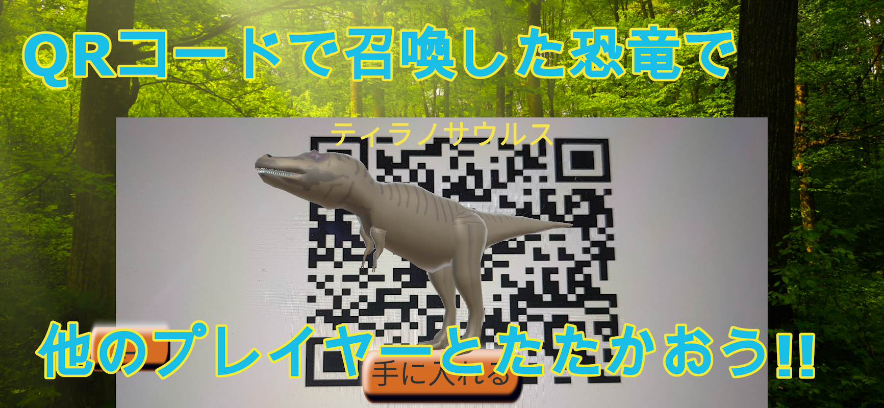 QR কোড ব্যবহার করে তলব করা ডাইনোসরের সাথে অনলাইনে অন্যান্য খেলোয়াড়দের বিরুদ্ধে প্রতিযোগিতা করুন! এই গেমটির QR কোড পড়ার জন্য গেমের শুরুতে ক্যামেরা ব্যবহার করার অনুমতি প্রয়োজন