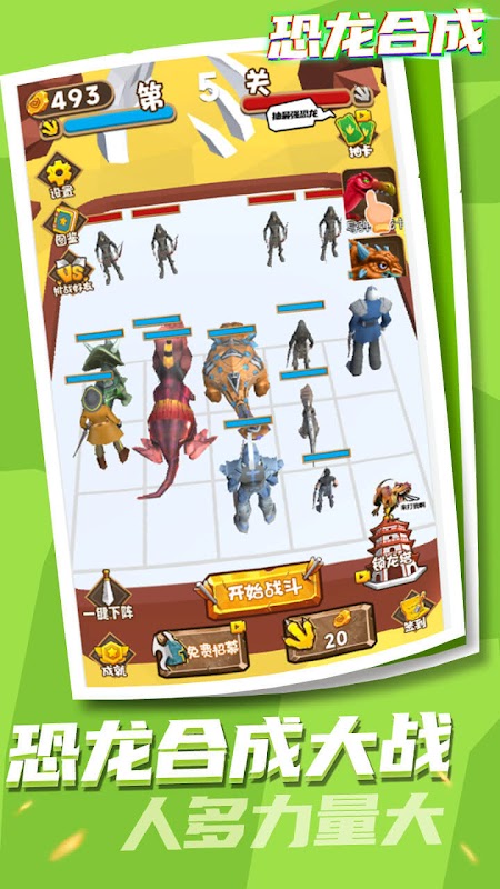 আসুন, আপনার ডাইনোসর এবং যোদ্ধারা যুক্তিসঙ্গত সংশ্লেষণের মাধ্যমে শত্রুকে সঠিক অবস্থানে পরাজিত করুন!