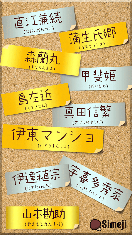 Simejiからいつでも戦国武将の名前がサクサク変換できるようになります!