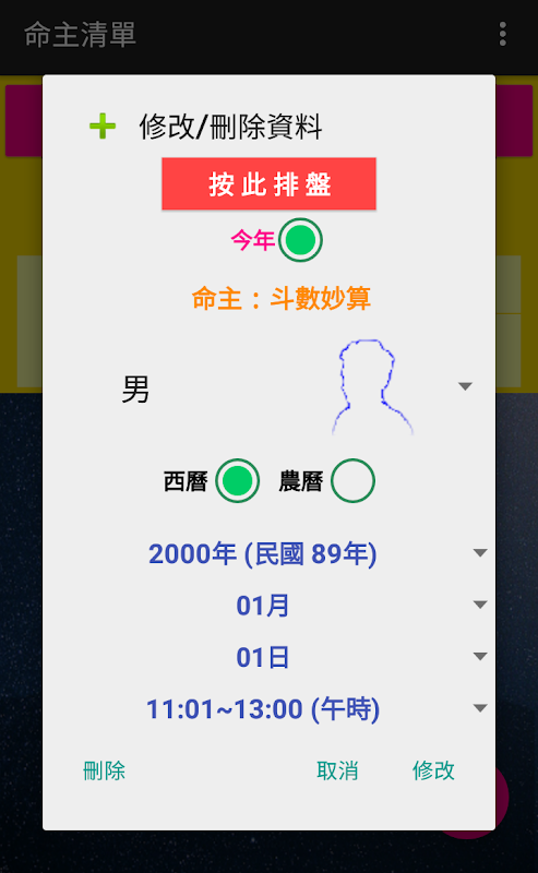 1. 在 (命主清單) 中,點選欲排盤的項目。