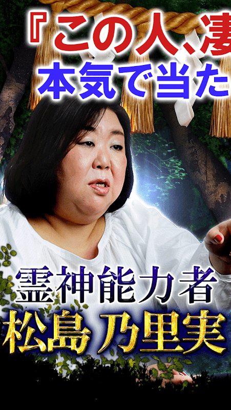 連絡先非公開&完全招待制の秘蔵霊能力者「松島乃里実」。かつてないほど見抜かれる。「本物はこの人だけ」と有名霊能者が絶賛した鑑定をあなたの目でお確かめください。