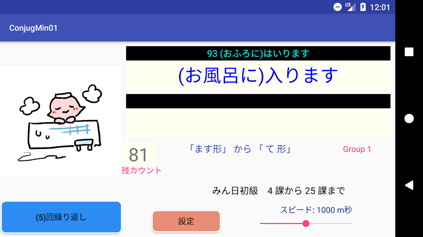 ・動詞は「みんなの日本語 初級I」の4課から25課までをベースとしており、157語収録しています。データを編集することにより対応可能ですので、間違いがあったらメールで教えて下さい(^^)/