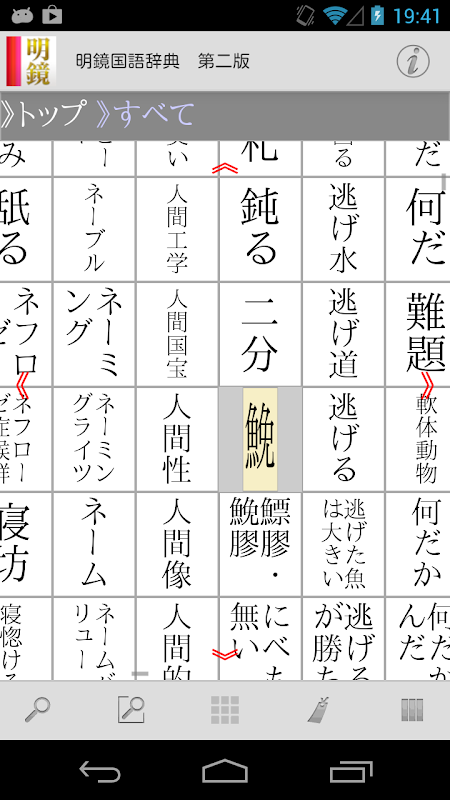 একটি জনপ্রিয় জাপানি ভাষার অভিধান যা "শব্দের সম্পর্কে বিভিন্ন প্রশ্নের" জবাব দেয় এবং শব্দের যথাযথ ব্যবহার এবং আপনি যে বিষয়ে যত্নবান হতে চান তা অপব্যবহারের ব্যাখ্যা দেয়। এটি আরও ব্যবহারযোগ্য জাপানি ভাষার অভিধানে বিবর্তিত হয়েছে।