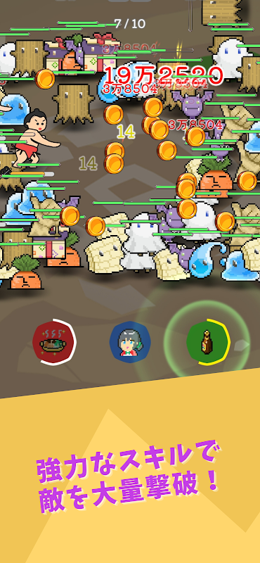 敵が落としたコインで攻撃を強化したり、弟子を仲間にしたりできます。