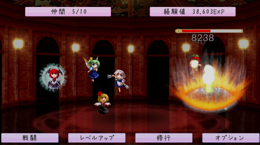 敵をタップして攻撃するのもよし、何もせず紅魔館の住民達が敵を倒していくのを見守るのもよし。