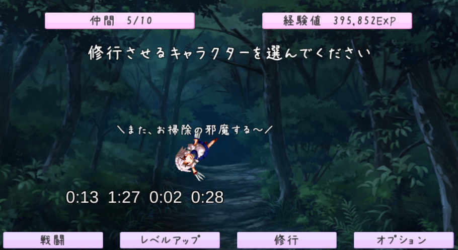 ・修行が10分に1度すぐに終わるボタンを設けました