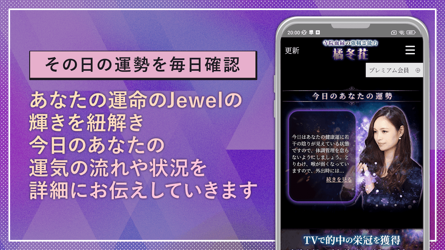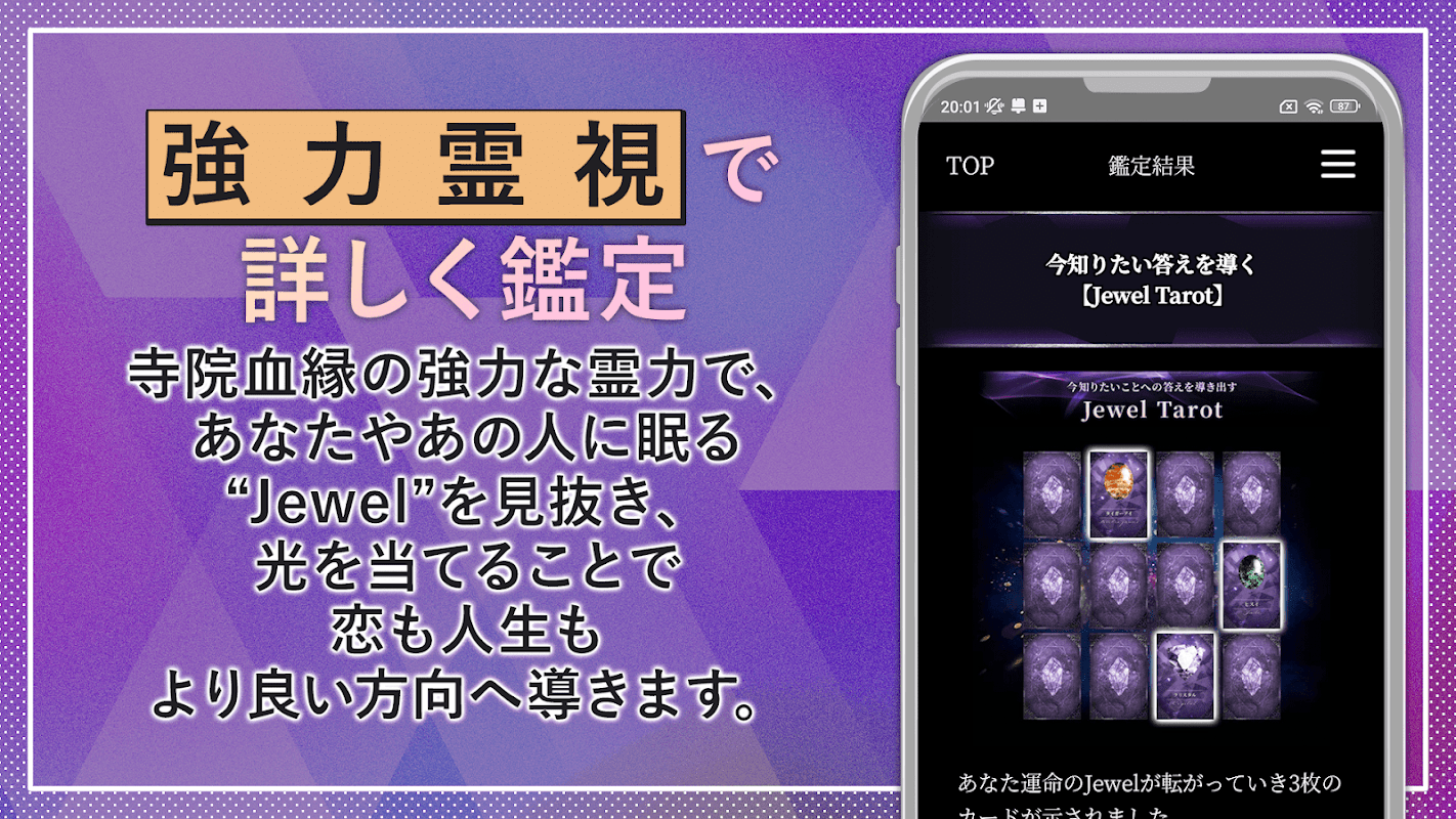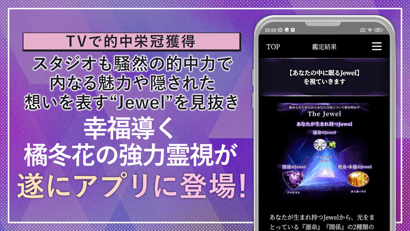 আপনি কেমন মানুষ এবং আপনার ভবিষ্যৎ কেমন তা আপনার নিজের রত্ন পাথরের উজ্জ্বলতা উন্মোচনের মাধ্যমে প্রকাশিত হবে। এবং সেই ব্যক্তির জুয়েল থেকে, আপনি জানতে পারেন যে তারা আসলে কি ধরনের অনুভূতি আছে। Fuyuka Tachibana এর শক্তিশালী আধ্যাত্মিক শক্তি ব্যবহার করে, আমরা প্রতিটি রত্ন পাথর পালিশ করব এবং আপনাকে তার ভাগ্য বিস্তারিতভাবে বলব।
