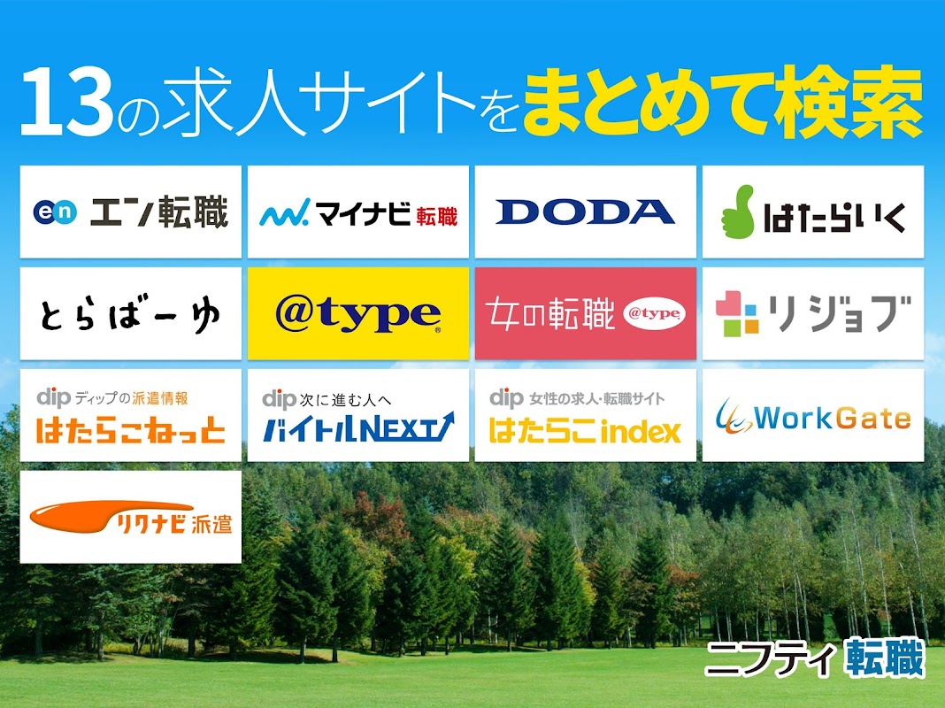 エン転職、マイナビ転職、DODAなど、有名な転職・求人サイトをまとめて検索!あなたにぴったりの仕事をこのアプリで見つけよう!