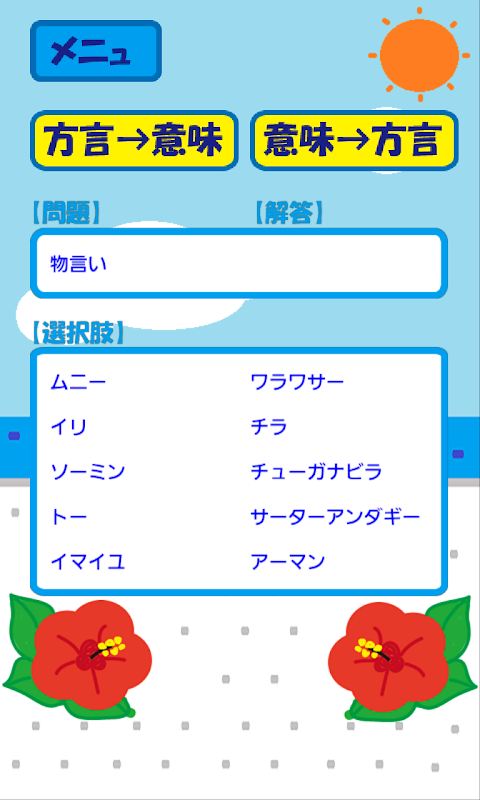 『沖縄方言を覚えよう』はウチナーグチの単語帳とクイズ機能をもったアプリです。