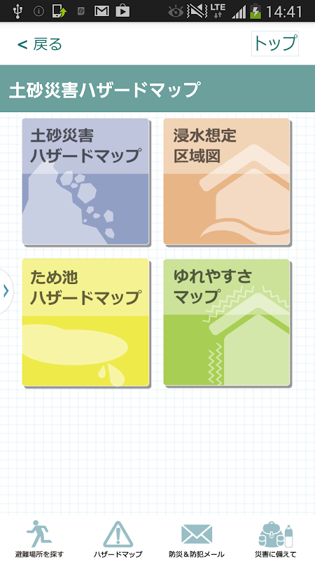 「防災&防犯ナビ」では、緊急時の避難場所などを、地区ごとに地図で見ることができます。スマートフォンの地図機能を使って、現在地からの道のりを見ることも可能です。