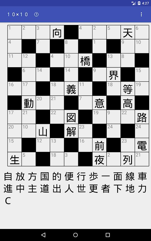 骨太の脳トレ、漢字のナンクロです。初級・中級・上級モードが選べますが上級モードは非常に難しいです。ぜひ上級モードの全問クリアに挑戦してみて下さい