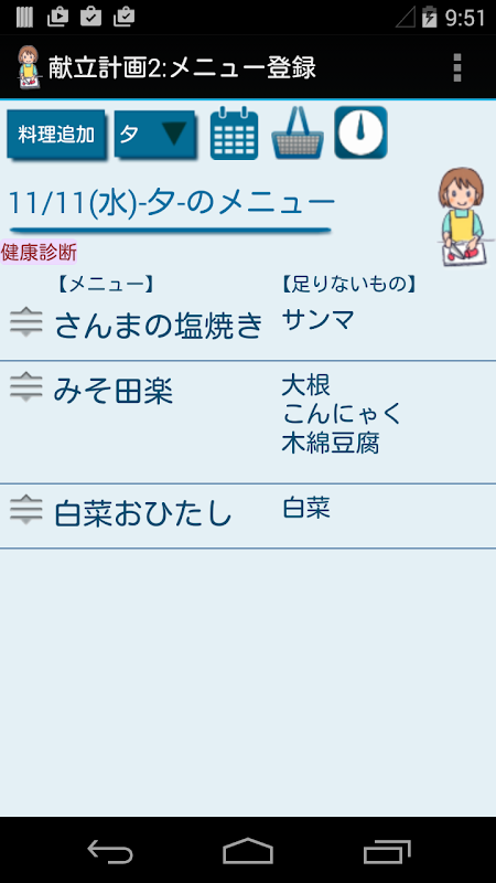 https://play.google.com/store/apps/details?id=jp.android.hiron.CookingPlan3