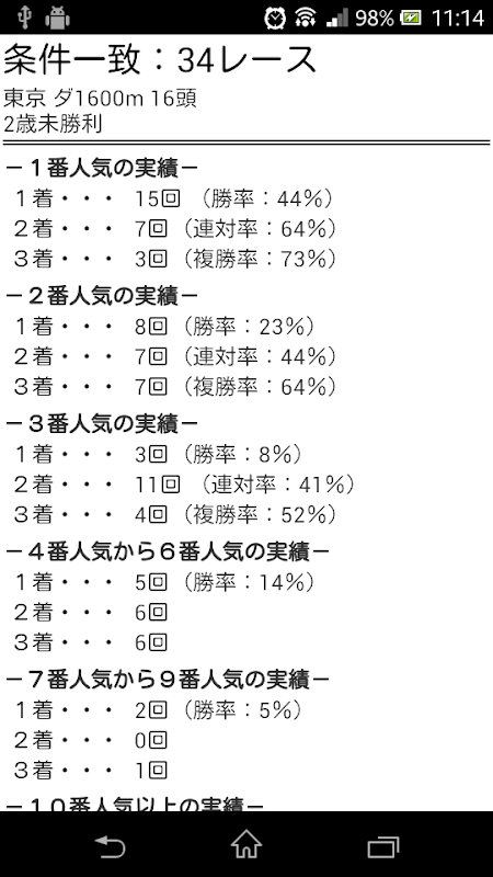 ঘোড়দৌড় তথ্য বিজয়ী JRA (রেসিং) এর 6 জানুয়ারী, 2007 থেকে সমস্ত 27,553 জাতি ফলাফল একটি অ্যাগ্রিগেশন 28 ডিসেম্বর, 2014 পর্যন্ত হয়।