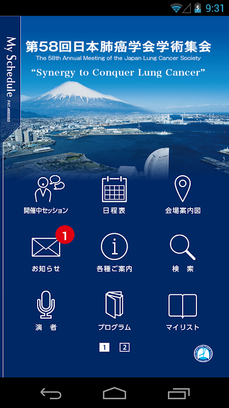 প্রোগ্রাম অনুসন্ধান & সময়তালিকা নিবন্ধন ব্যবস্থা "আমার সূচি" জন্য 58th জাপান লাং ক্যান্সার সোসাইটি বার্ষিক সভা মোবাইল অ্যাপ্লিকেশন।