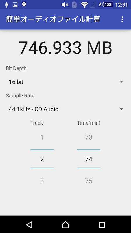 音楽をダウンロードする前に、録音をする前に、データの容量が知りたい…そんな時にこのアプリでトラック数と時間を入れて計算してみてください。