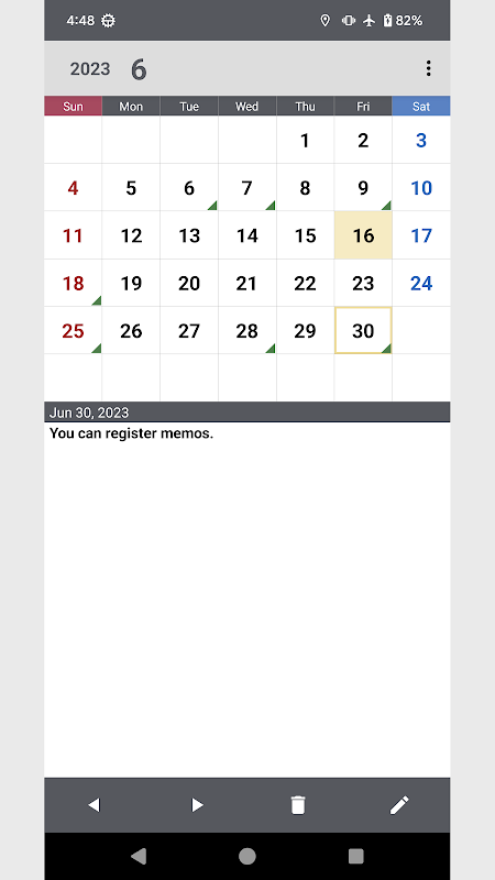 আপনি যখন একটি মেমো যোগ করেন, তখন ক্যালেন্ডারে একটি চিহ্ন প্রদর্শিত হয়, যা আপনাকে এক নজরে আপনার পরিকল্পনাগুলি দৃশ্যমানভাবে উপলব্ধি করতে দেয়৷