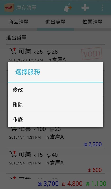 除了可以進行一般庫存管理的功能,舉凡進、出貨之操作,對於商品位置之管理,商品名稱增刪修改均提供相當簡易的操作流程,讓各行各業的人士也能使用本APP進行庫存管理。