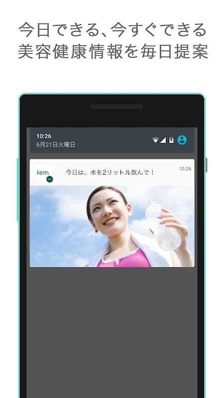 スキマ時間にアプリを開いていただき、ドクター監修によるアドバイスを実行することで、あなたの悩みもきっと軽くなるはずです。まずは毎日ひとつ、fem.TIPSを実行してみましょう!