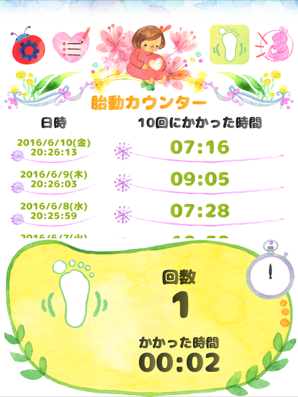 一部の処理を見直し、胎動カウントと陣痛計測がしやすくなりました。