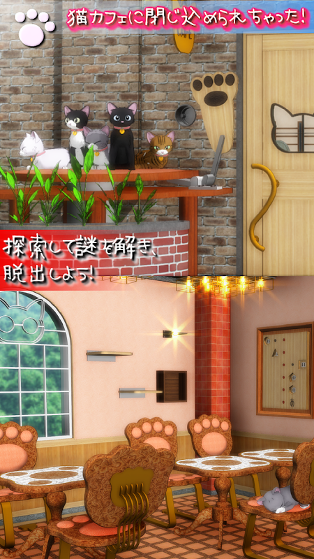 話題の猫カフェに行ってみたら、店員さんが誰もいない!?なぜかドアが開かなくなっちゃった!謎を解いて脱出しよう!可愛い猫カフェが舞台の脱出ゲーム!対象12才以上