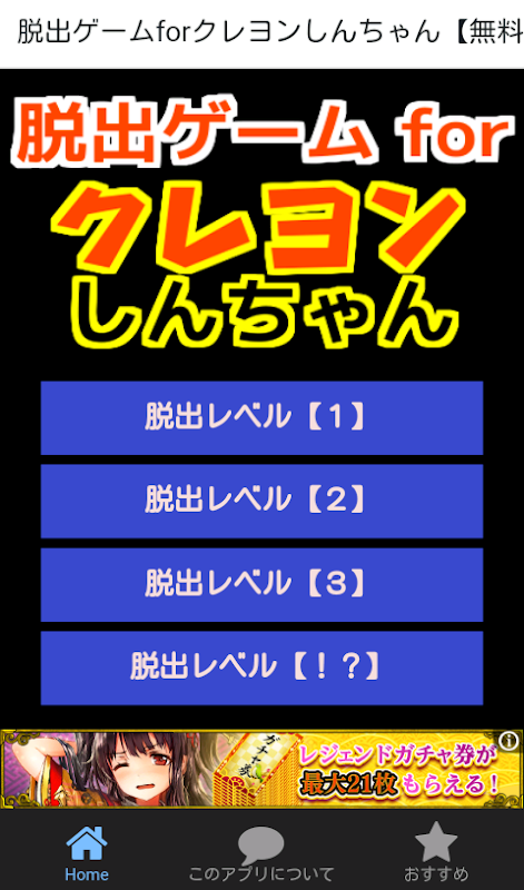 このアプリは人気TVアニメ『クレヨンしんちゃん』バージョンの【脱出ゲーム】で、完全無料の【非公式アプリ】です。