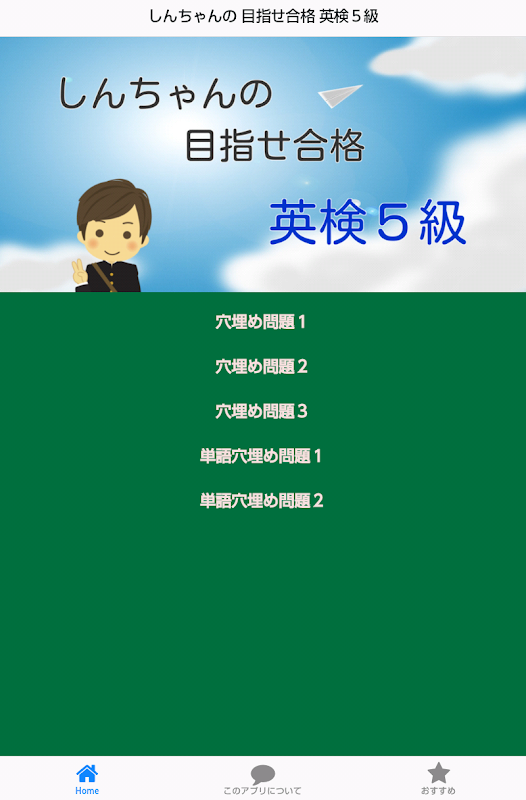 このアプリは、しんちゃんと一緒に英検5級の合格を目指し、作成されたアプリです。