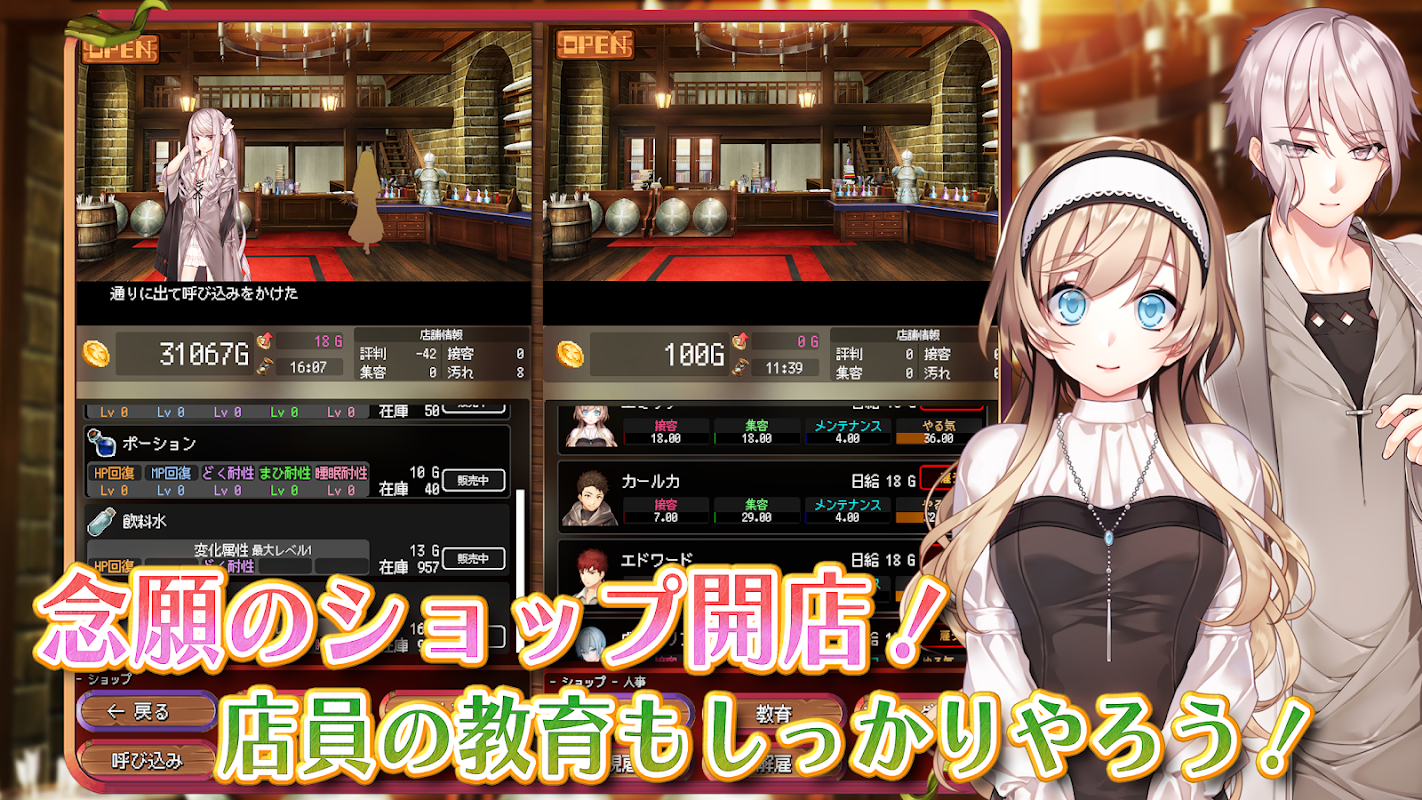 それぞれのステータスは雇った店員の影響を受けて成長する