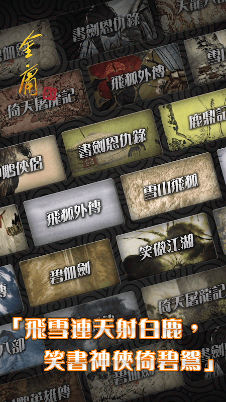 এই অ্যাপ্লিকেশনটি সবচেয়ে ক্লাসিক জীন ইয়ং নিখুঁত প্রজনন সংগ্রহ ইতিহাস, আপনি Wuxia মি ভাগ করার জন্য ইলেকট্রনিক বই একটি বিরল সংগ্রহ করে তোলে।