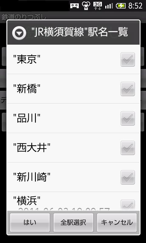 駅を選択して日時データ入力画面から「削除」ボタンで削除できます。