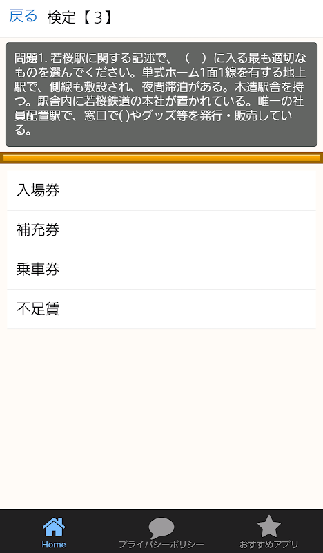 超マニアックな鉄道検定アプリです。地方の駅や路線など登場します。Sランク目指してチャレンジしてみてください。