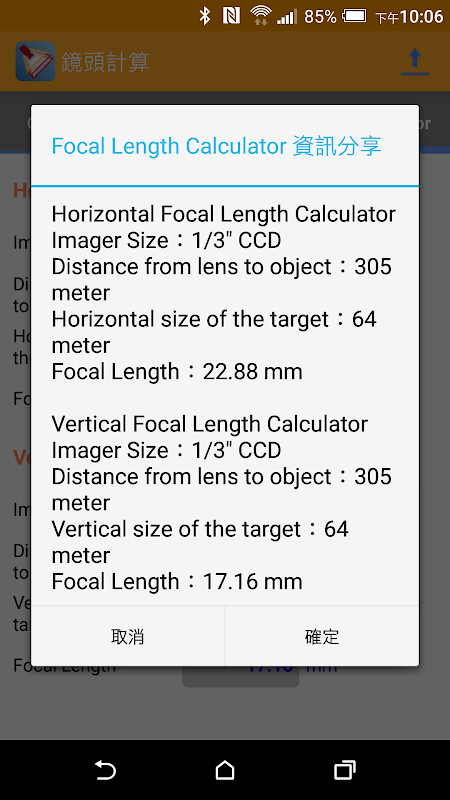 "লেন্স কম্পিউটিং" একটি হিসাব এবং লেন্সের ফোকাল দৈর্ঘ্য APP অ্যাপ দুটি ফাংশন গণনা করা যায়. লেন্স লেন্স আকার, দূরত্ব নির্বাচন নির্ণিত হতে পারে, এবং দেখুন এর বিষয়ের দৈর্ঘ্য ফোকাল লেন্থের হিসাব মান, ক্ষেত্র (দেখুন, FOV মাঠ) এবং টার্গেট এলাকার উল্লম্ব উচ্চতা সেট. ফোকাল দৈর্ঘ্য হিসাব লেন্সের আকার নির্বাচন নির্ণিত ফোকাল লেন্থ নিরূপণ করা অনুভূমিক এবং উল্লম্ব ফোকাল লেন্থ দূরত্ব এবং দৈর্ঘ্য এবং লক্ষ্য এলাকার প্রস্থ নির্ধারণ করা হয়, আপনি ফোকাল লেন্থের মান নিরূপণ করতে পারেন রয়েছে. 1 / 4,1 / 3,1 / 2.5,1 / 2,1 / 1.8,2 / 3 এবং 1 ইঞ্চি: লেন্সের আকার সাত ধরণের, যথা নির্বাচন করতে পারবেন. মিটার (মিটার), ফুট (ফুট), ইঞ্চি (ইঞ্চি) এবং মিমি (মিমি): পরিমাপ, যথা চারটি ইউনিট নিয়ে গঠিত.