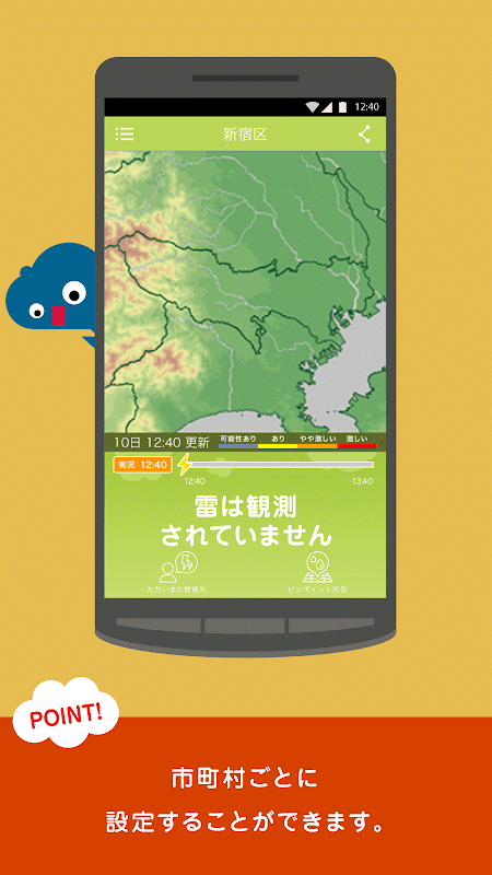 এমন একটি অ্যাপ যা আপনাকে বজ্রপাতের খবর দেয়! যখন একটি বজ্র মেঘ কাছাকাছি আসার প্রত্যাশিত তখন আমরা আপনাকে পপ-আপ ইত্যাদির মাধ্যমে অবহিত করব৷ PRO সংস্করণে, আপনি কোথায় আছেন এবং বজ্রপাতের ভবিষ্যতের গতিবিধি অনুযায়ী তথ্য দেখতে পারেন!