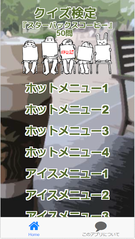 Dying like the "Starbucks coffee"For middle-aged fanIt is a non-certified test quiz app.Hot menuIce menucustomOf the following three items:.