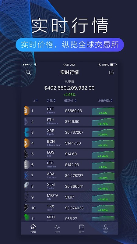 拥有全球近2000个数字货币,1万+家交易所,1万+个交易对的24小时实时数据