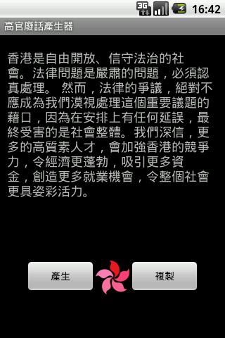 - 文字方面,由於這個app會節錄高官廢話內容後才處理,絕不構成「顯著比例」的抄錄,用戶絕對不需擔心版權問題。