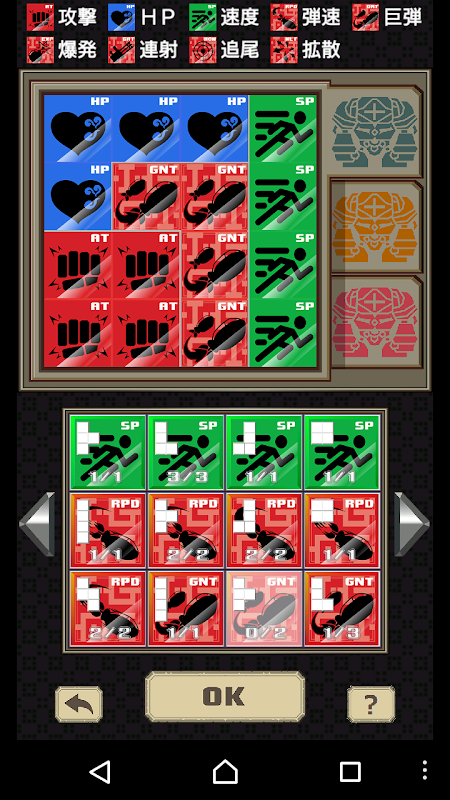 複数の武器石版(「敵を追尾する」「複数の弾を撃つ」など)