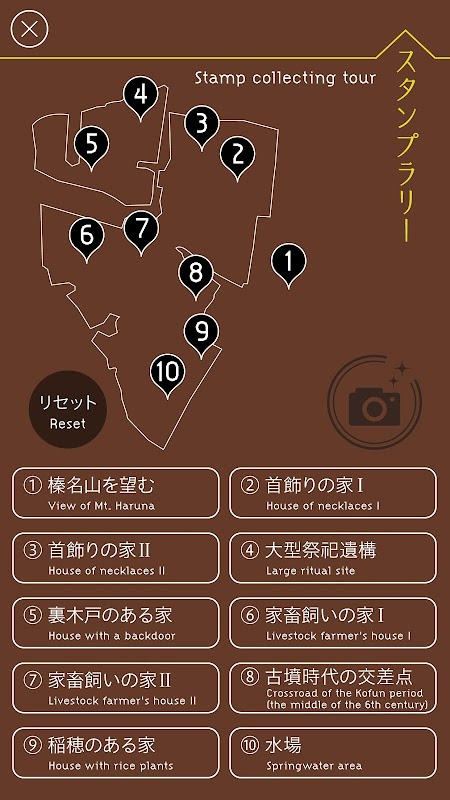 黒井峯遺跡に設定された10ヵ所のビューポイントエリアに入ると古墳時代の集落を再現した360度VRが自動で表示されます。