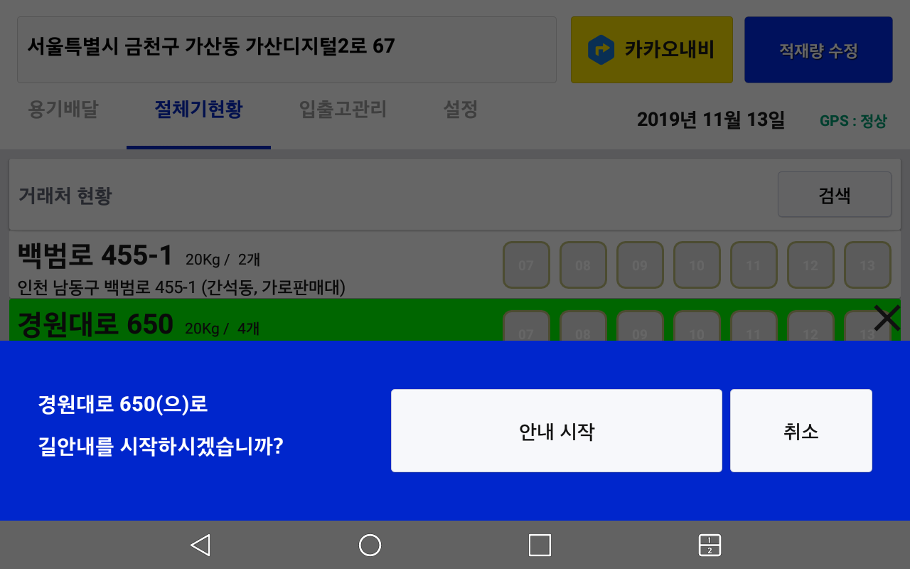 거래처에 가스 용기 출고 및 충전소에서 입고한 가스 용기를 어플상에서 등록할 수 있습니다.
