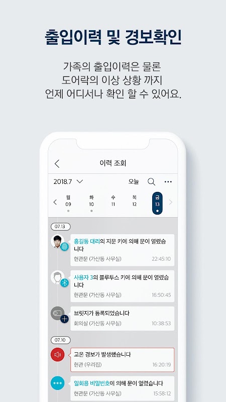 • দরজার লক ব্যবহার করা সমস্ত প্রমাণীকরণ পদ্ধতি দ্বারা প্রমাণিত সমস্ত তথ্য ইতিহাস উপলব্ধ।