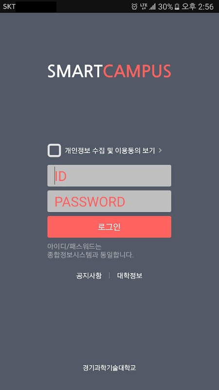 * 학생 및 교직원이 아닐 경우 공지사항과 학교정보만 이용할 수 있습니다.