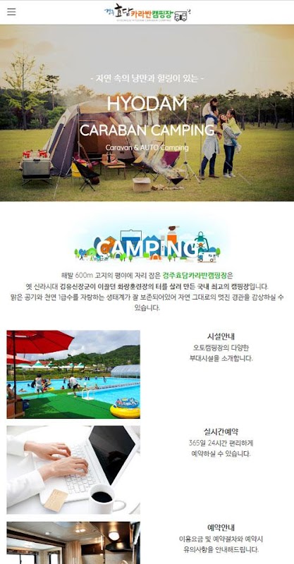 이끌던 화랑훈련장의 터를 살려 만든 국내 최고의 캠핑장입니다.