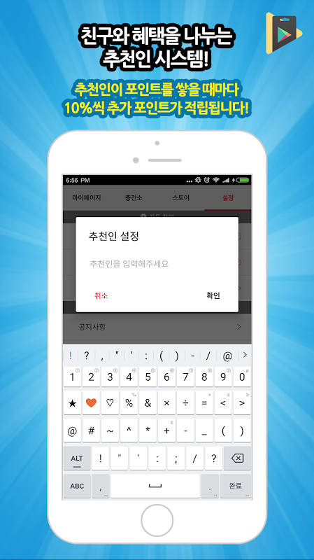 2) 추천인 아이디 노출과 홍보는 Google play 앱 리뷰를 제외한 SNS나 커뮤니티, 블로그, 카페 등을 이용해 주세요.