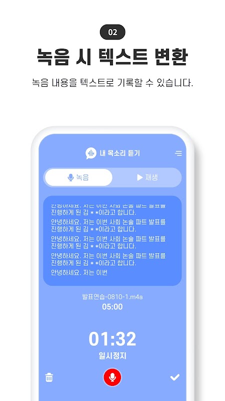 내목소리듣기 – 발표녹음, 음성녹음, 녹음기 1.02