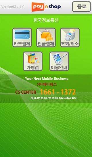 페이앤샵2는 신용카드결제, 현금결제가 가능하고 영수증 발행 및 POS기능(매출현황)까지 가능한 통합결제시스템 입니다.