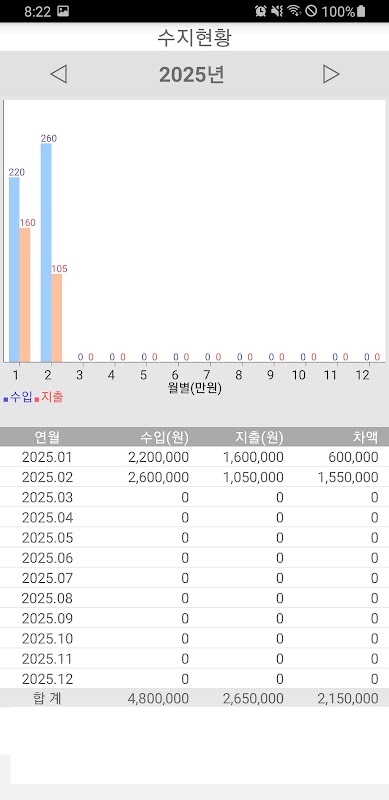 ㅇ বার্ষিক আয় এবং ব্যয় ব্রেকডাউন গ্রাফ দেখুন