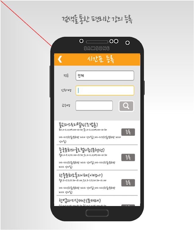 하나하나 강의일정을 입력할 필요없이 검색을 통해 시간표에 원하는 강의를 추가할 수 있습니다.