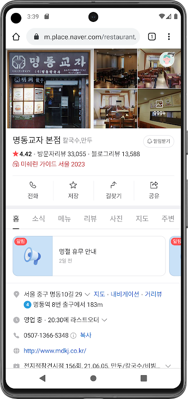 * রেস্তোরাঁ সম্পর্কে বিস্তারিত তথ্য Naver স্টোর তথ্য সাইটের সাথে লিঙ্ক করা হয়েছে। আপনি মেনু, পর্যালোচনা, ফটো, ইত্যাদি পরীক্ষা করতে পারেন।